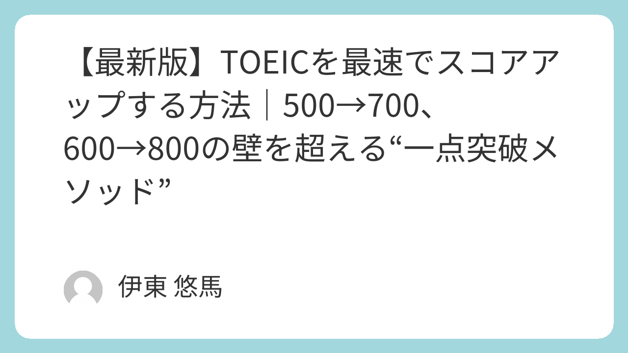 TOEICは努力量ではなく、“やり方”で点数が決まるテストです。正しい順番で正しいことをやれば、誰でも700・800へ確実に届きます。